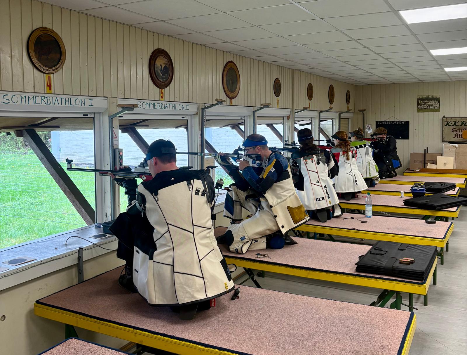 Die Schützen zu Beginn des Rundenwettkampfes im kniend Anschlag